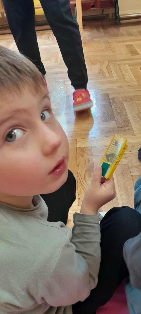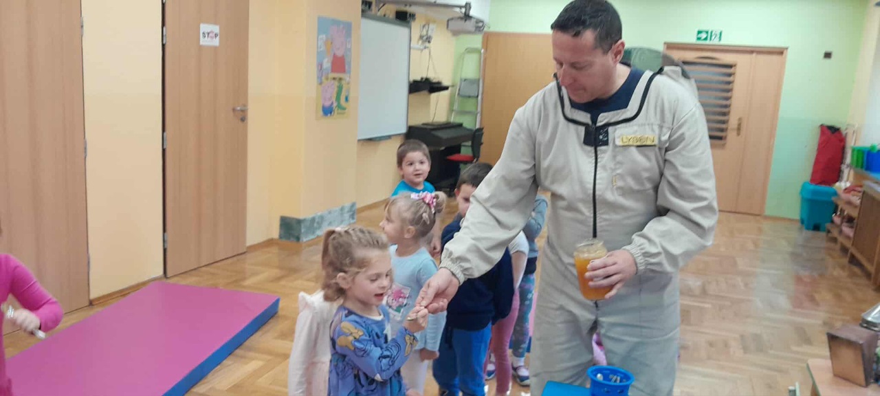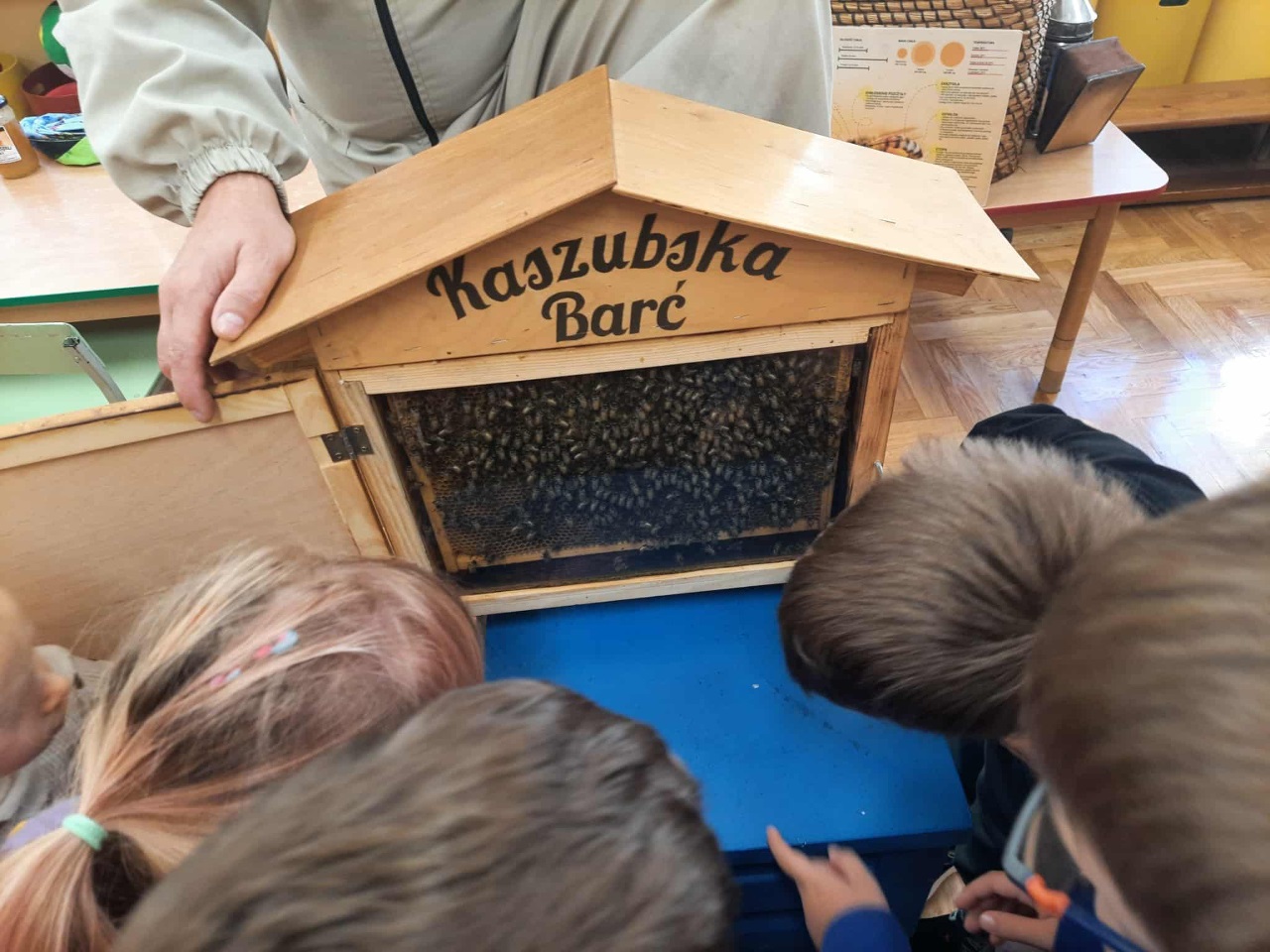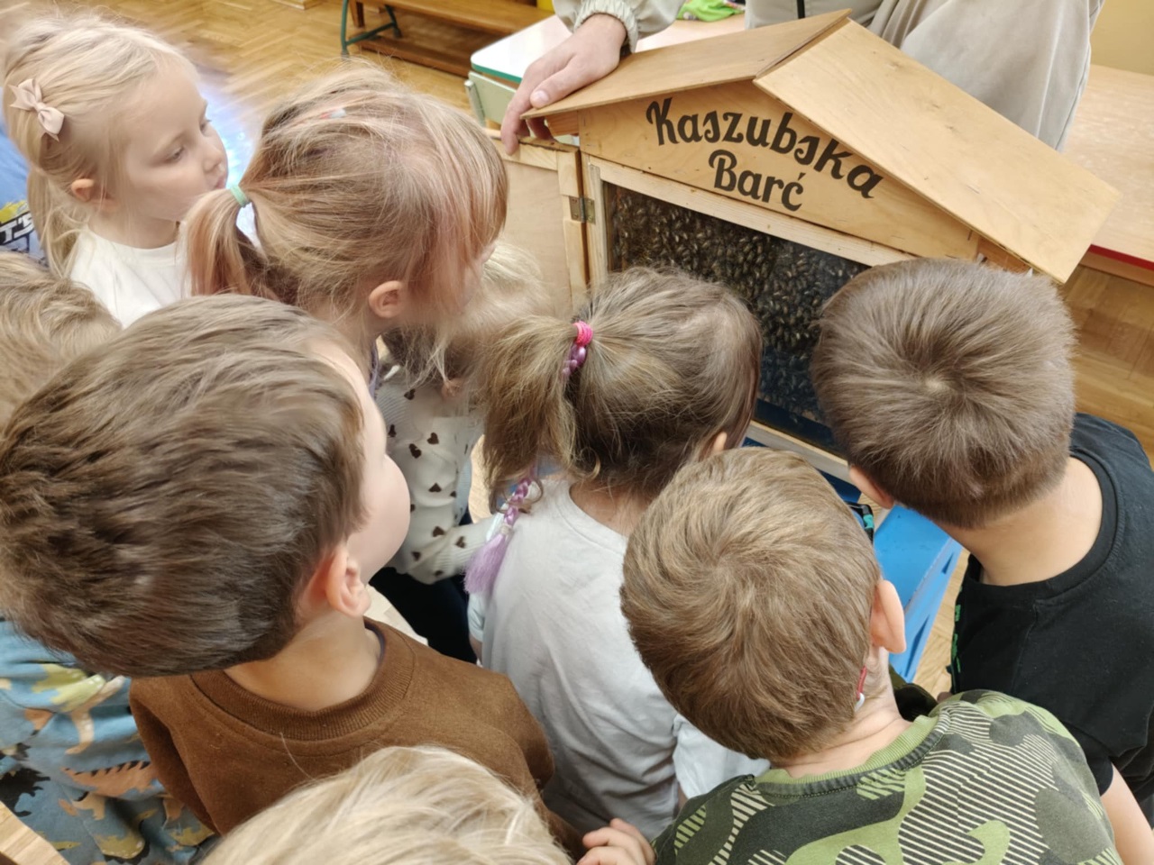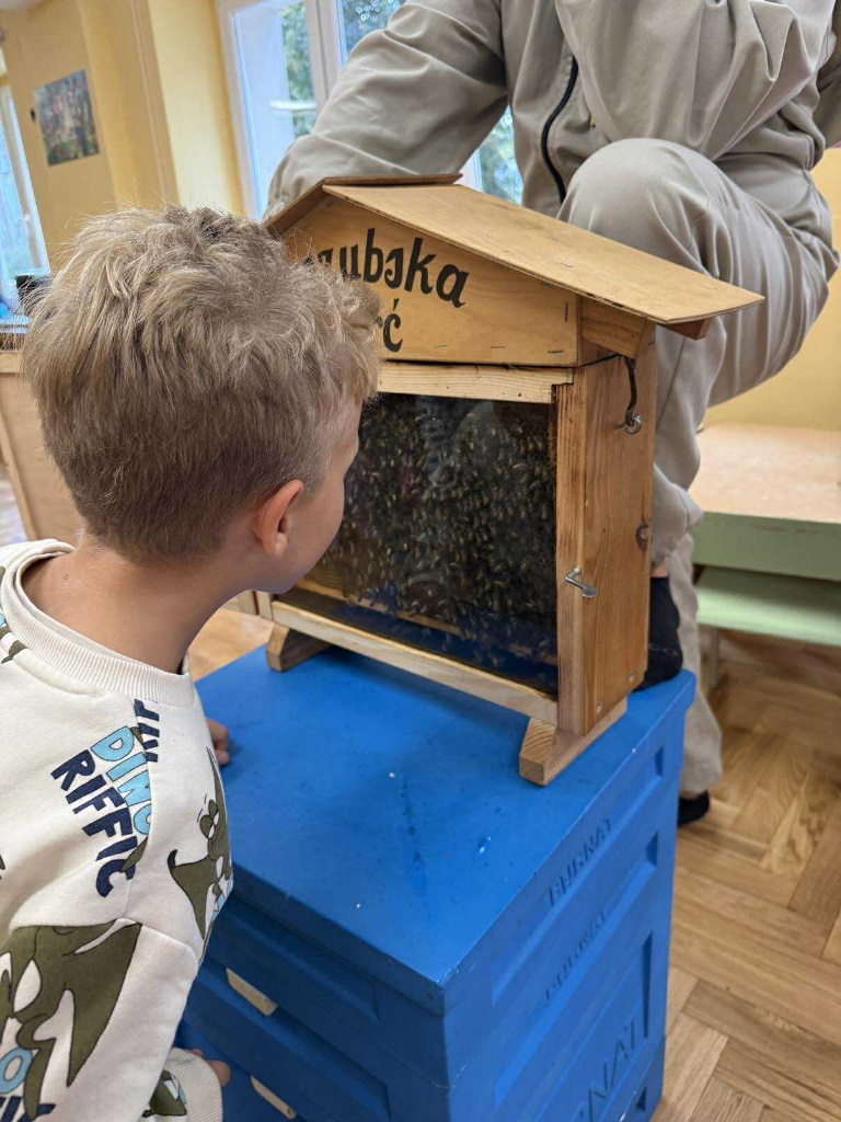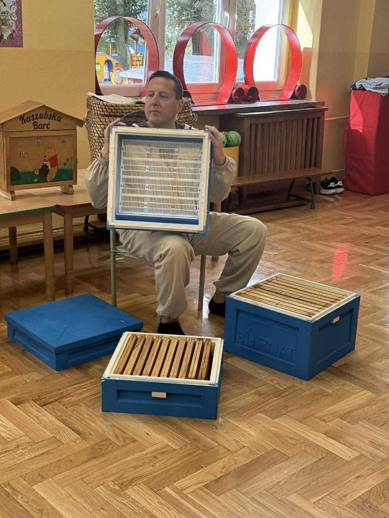 Odwiedził nas pszczelarz. Przyjechał ze swoimi podopiecznymi. Spotkanie było ciekawe i smaczne. A szukanie królowej to prawdziwie detektywistyczne podchody.
