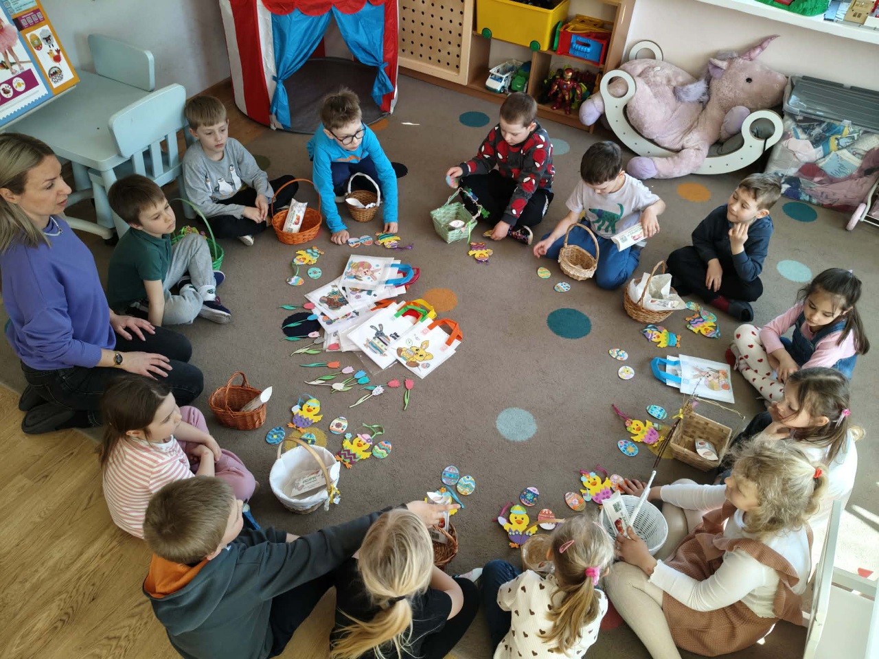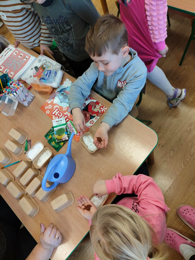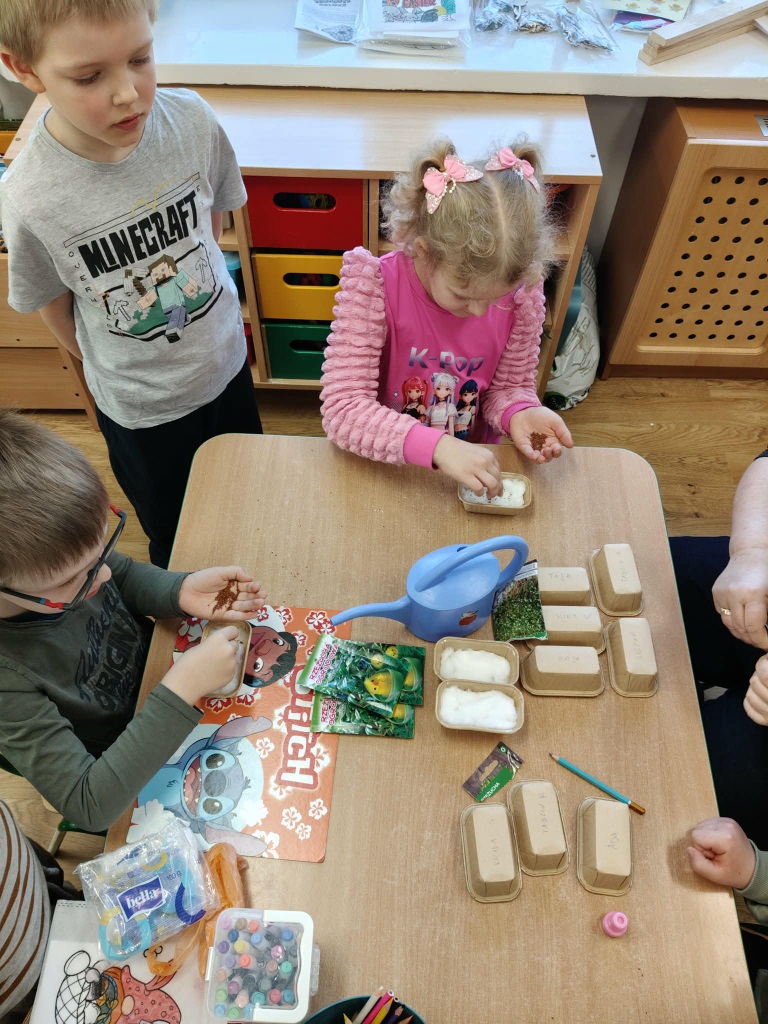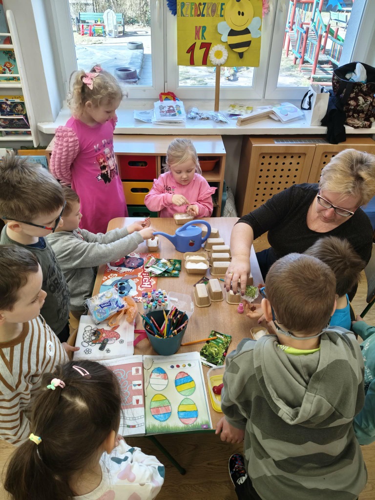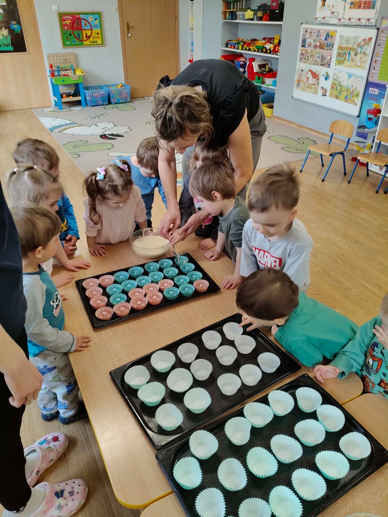 Jak w każdym domu tak i w przedszkolu mamy dużo pracy przed Wielkanocą. Trzeba wysiać rzeżuchę, upiec babeczki do koszyczków. Zrobić kolorowe ozdoby i dekoracje. To piękny czas.